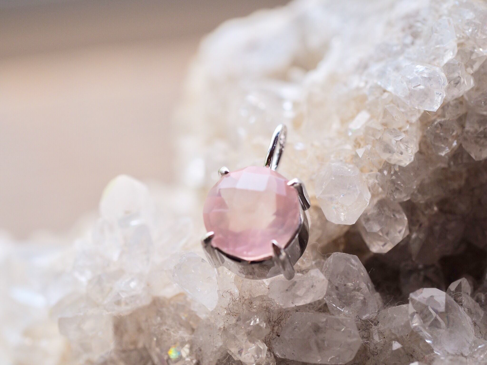 女性らしい華を感じる、ローズクォーツのペンダントトップです。