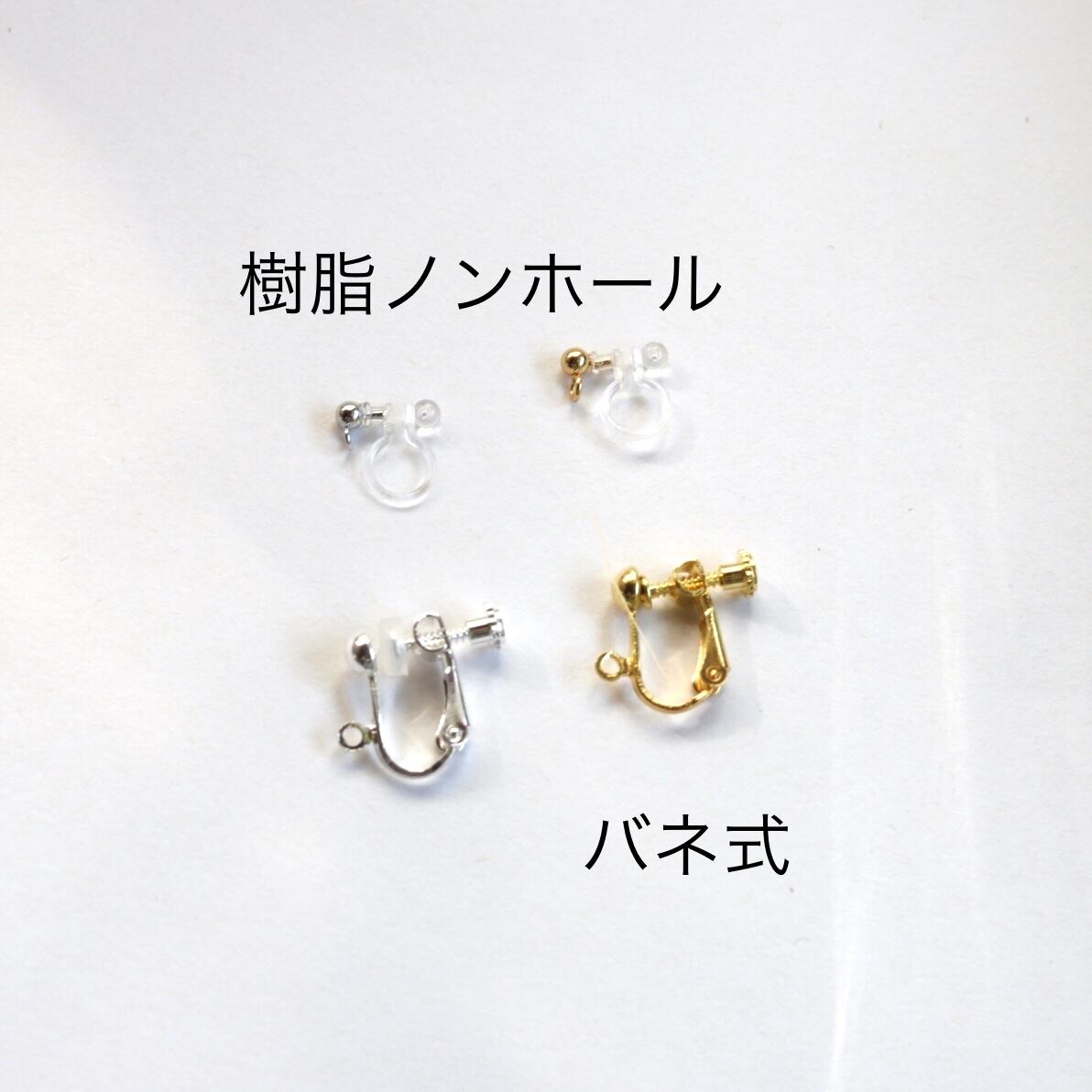 ピアスからイヤリングへの変更も可能です。ご注文時、備考欄にバネかノンホールか、ご希望のタイプをご記入ください。